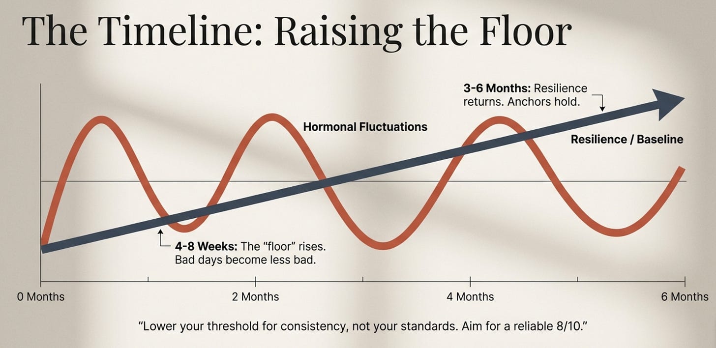 What this means practically is that the same strategies that required mostly-consistent effort before now require genuinely non-negotiable consistency. Not more strategies. Not a different approach. The same foundations, applied with less willingness to let things slide when life gets demanding.