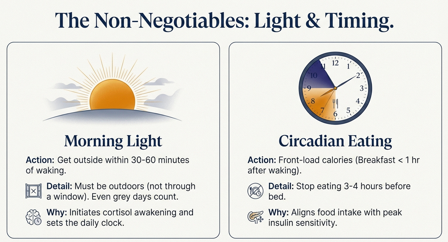 You could skip morning light, eat whenever, stay up late scrolling. Your circadian rhythm was resilient enough to adapt.
