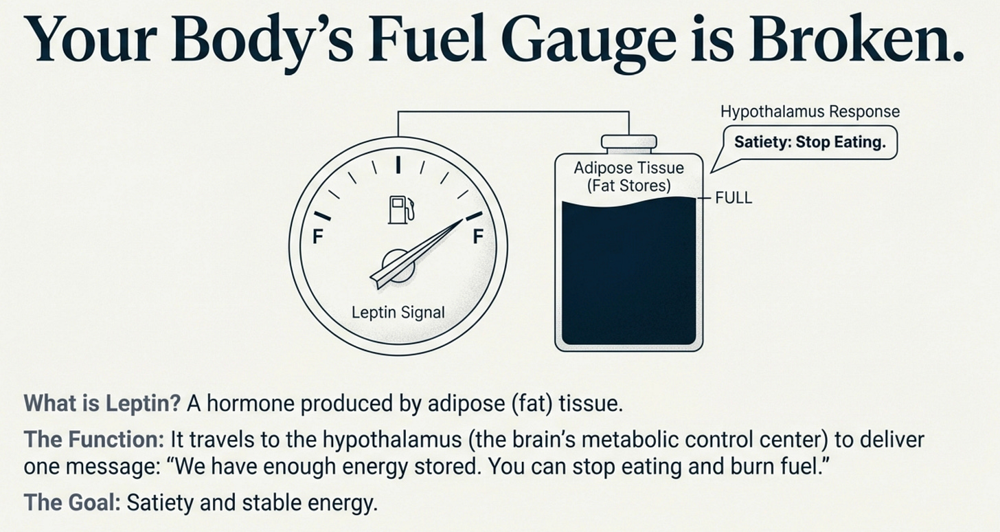 What’s actually happening is that the body’s fuel gauge has gone offline. And once you understand why that happens—and what actually fixes it—everything makes more sense.